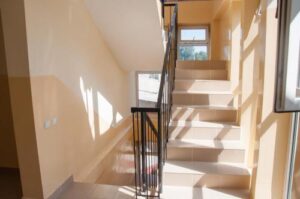 A spacious common area and a peaceful green courtyard